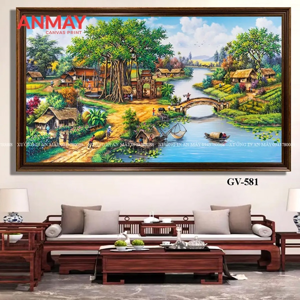- Khung tranh chắc chắn, dễ treo: Căng vải trên khung gỗ thông tự nhiên, bọc ngoài bằng khung nhựa UBicon bản 7cm màu vân gỗ. Thiết kế không dùng kính, không lót ván ép – đảm bảo tranh nhẹ, thông thoáng, không lo mốc hay bong tróc.