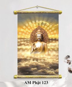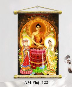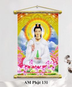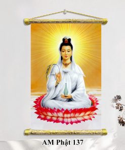 Bên cạnh đó, tranh Phật Thích Ca cũng rất phổ biến, tái hiện hình ảnh Đức Phật với vẻ mặt từ bi và an nhiên. Những bức tranh này không chỉ gợi nhớ về đấng giác ngộ mà còn khuyến khích con người tu tập, sống thiện lành. Một dòng tranh khác đầy cảm hứng là tranh Phật Quan Âm Bồ Tát, biểu tượng của lòng từ bi và sự che chở. Tranh Quan Âm thường thể hiện hình ảnh Ngài đứng trên đài sen, tay cầm bình cam lộ, mang đến cảm giác bình yên và an lành cho gia đình.